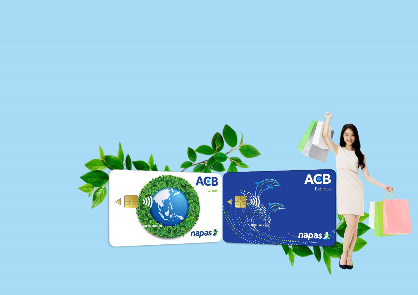 Sự bắt mắt trong hình thức cũng giúp hai chiếc thẻ ACB Green và ACB Express được khách hàng yêu quý ngay từ cái nhìn trước nhất. Chiếc thẻ ACB Green đúng với tên gọi nổi trội với tông xanh lá chủ đạo với biểu tượng "Gần Lại O" mang thông điệp yêu địa cầu mà ACB đã và đang truyền tải ở rất nhiều sự kiện trước đây. Trong khi đó, chiếc thẻ ACB Express dùng tông xanh biển với hình ảnh hai chú cá heo là một trong những tượng trưng gần gũi của thông điệp bảo vệ môi trường.
